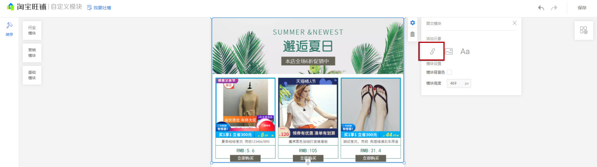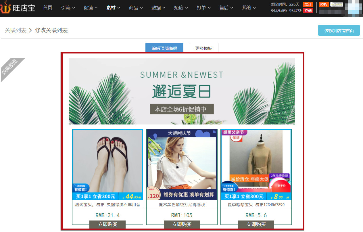 因为现在全网都不支持手机端超链接,目前只可以在淘宝旺铺中进行设置,先把关联销售活动模板截图保存下来,再在淘宝旺铺中完成相关设置即可。