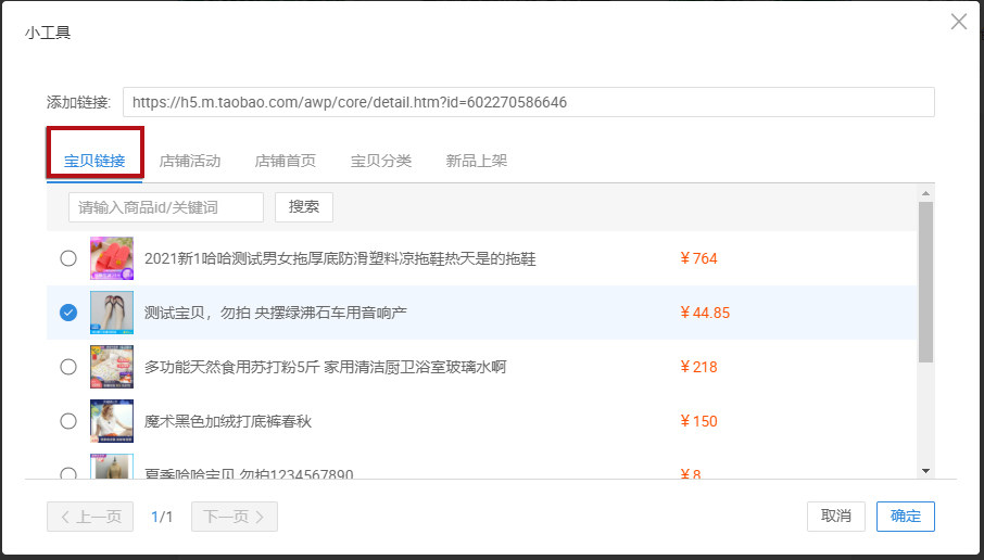 注:只有“出售中”的宝贝才能搜索和添加